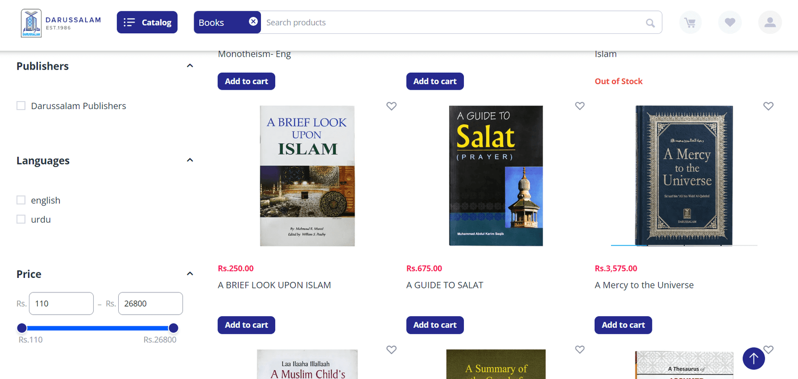 Darussalam provides a comprehensive e-commerce platform specializing in Islamic books, educational resources, and religious products. Users benefit from robust API integrations, flexible catalog management, and secure payment processing and system is specifically designed to enhance user experience and streamline online transactions.