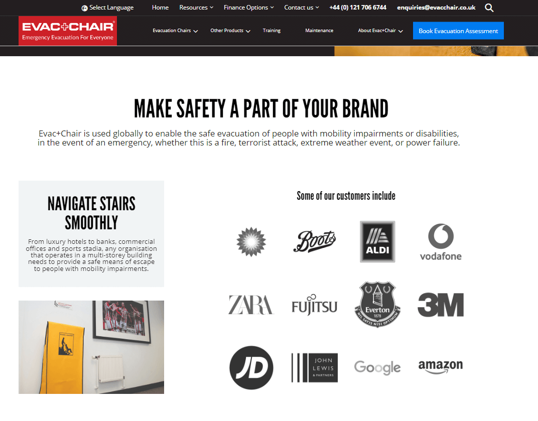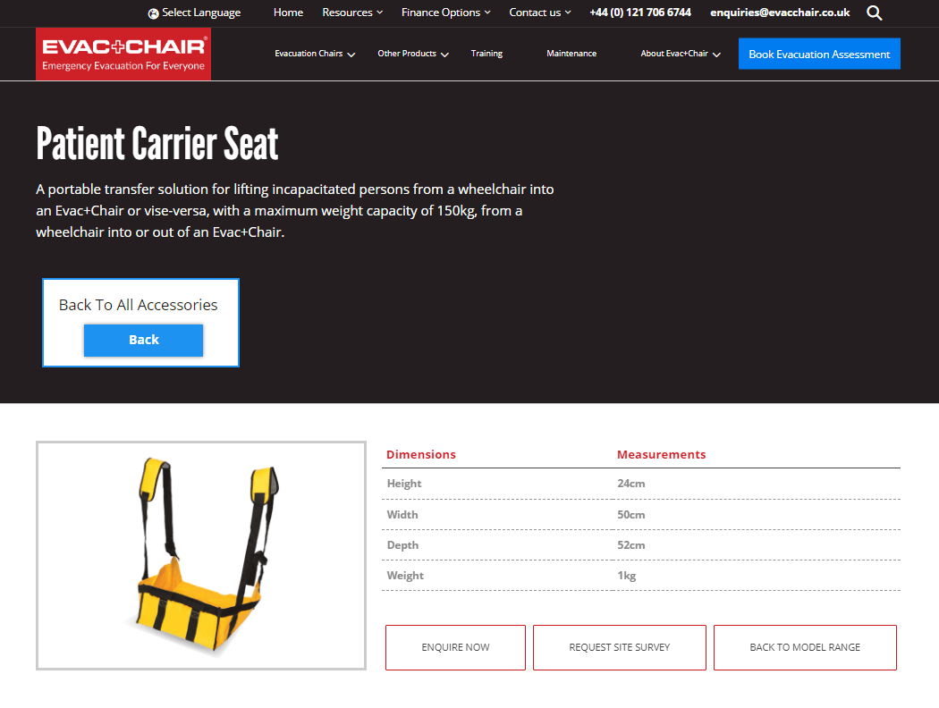 This utilizes modern web technologies to deliver a comprehensive platform for evacuation chair solutions. The site features responsive design, intuitive navigation, and detailed product information. With robust search functionalities and secure transaction capabilities, it ensures an efficient user experience and easy access to critical safety equipment.