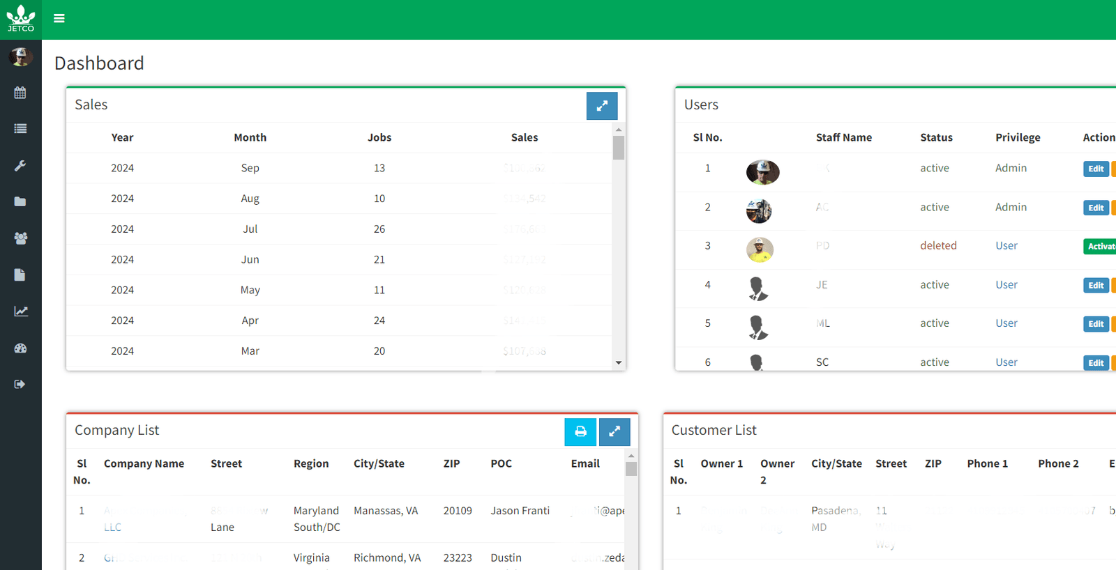 GoJetco is a bespoke applicatoin built for a Car maintenance company in U.S named as "Jetco". It is Dashboard based application used by their employees to update maintenance record on all vehicle. They keep track of every single machine they maintain. Custom based application build on Core-Php, Laravel APIs and Bootstrap.